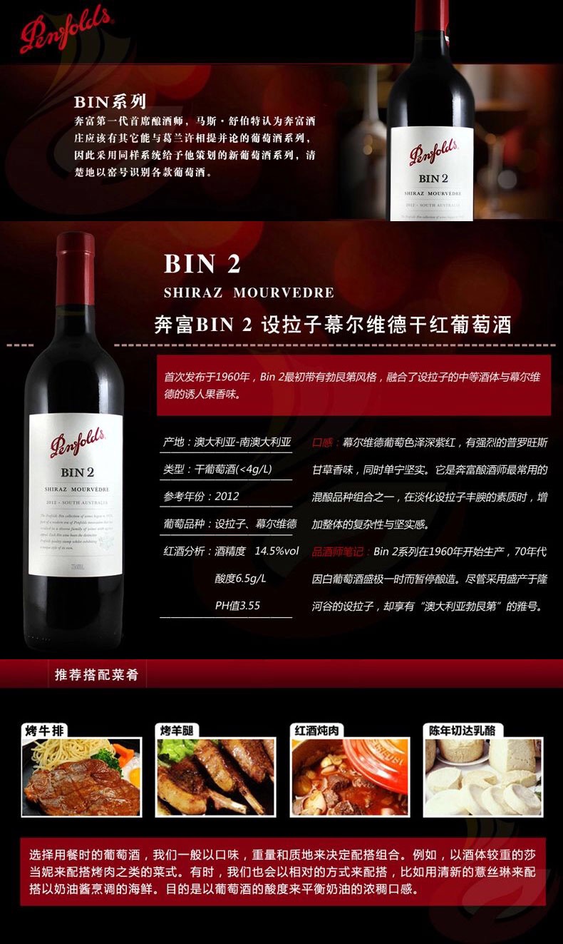 澳大利亚奔富 BIN2 设拉子干红葡萄酒